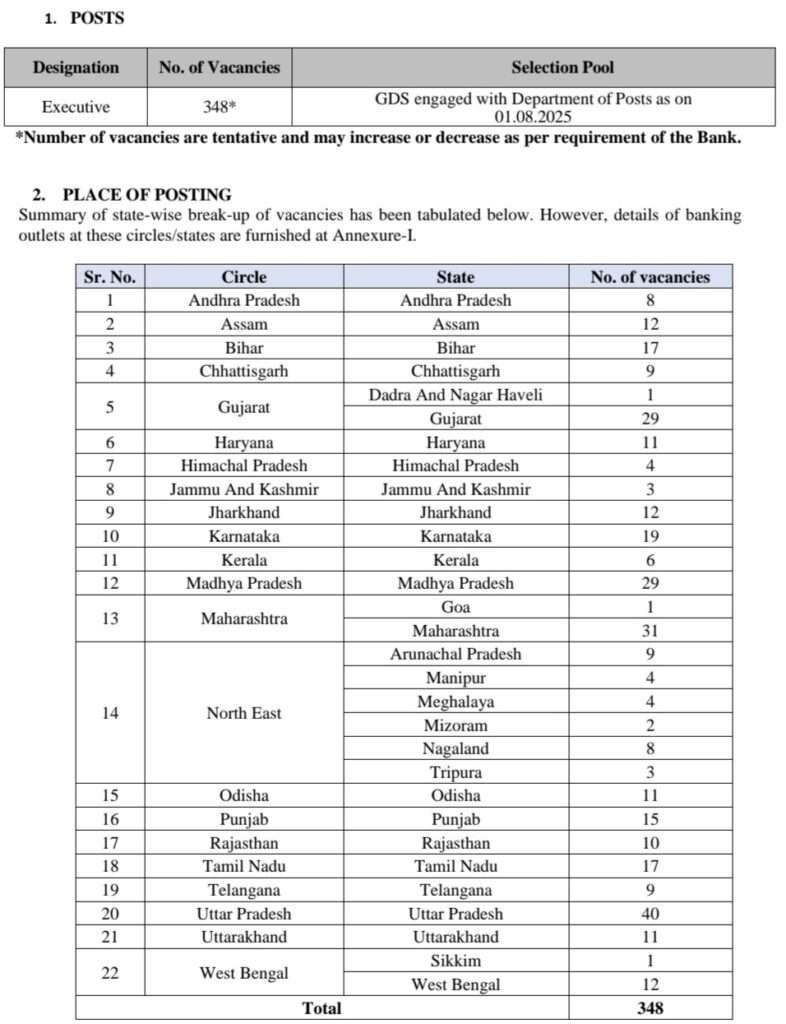 India Post Payments Bank Executive Recruitment 2025 Latest IPPB Job Notification 2025 in Telugu : తపాలా శాఖలో బంపర్ నోటిఫికేషన్ మీ ముందుకు తీసుకొచ్చాను.. ఇండియా పోస్ట్ పేమెంట్స్ బ్యాంక్ లిమిటెడ్ (IPPB)లో ఎగ్జిక్యూటివ్పోస్టుల భర్తీ కోసం IPPB నోటిఫికేషన్ విడుదల చేసింది. మొత్తం 348 ఖాళీల కోసం దరఖా ఆహ్వానిస్తున్నారు. ఆసక్తి GDS గా పనిచేస్తూ Any డిగ్రీ అర్హత గల అభ్యర్థులు వెంటనే అప్లై చేసుకోండి. అప్లికేషన్లు దరఖాస్తు చేసుకోవడానికి చివరి తేదీ అక్టోబర్ 29, 2025.